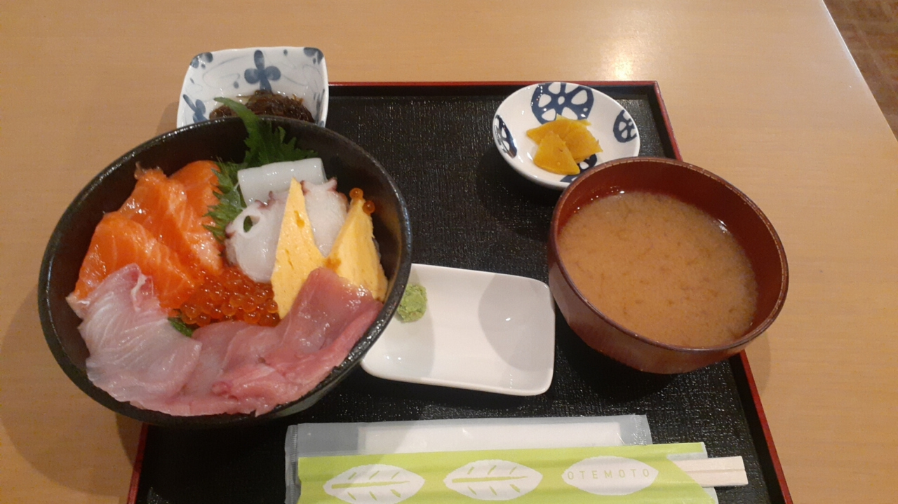 根室花まるが運営する主に焼魚と海鮮丼を提供する海鮮料理店の1つで、一夜干しと海鮮丼できたて屋ステラプレイス店は札幌駅に隣接する「ステラプレイス」という商業施設の6階の西寄りにあります。