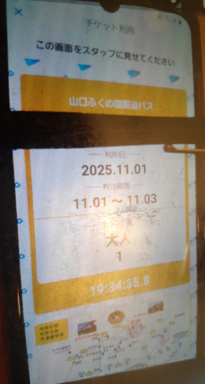 2025年11月1日から3日にかけて利用しましたが、秋芳洞への入場料で1,600円、新山口駅~秋芳洞間のバス代が1,040円程度、さらにスーパーはぎ号で新山口駅~萩市内を移動しましたが、こちらが片道あたり1,600円した為、これだけで十分モトが取れました。