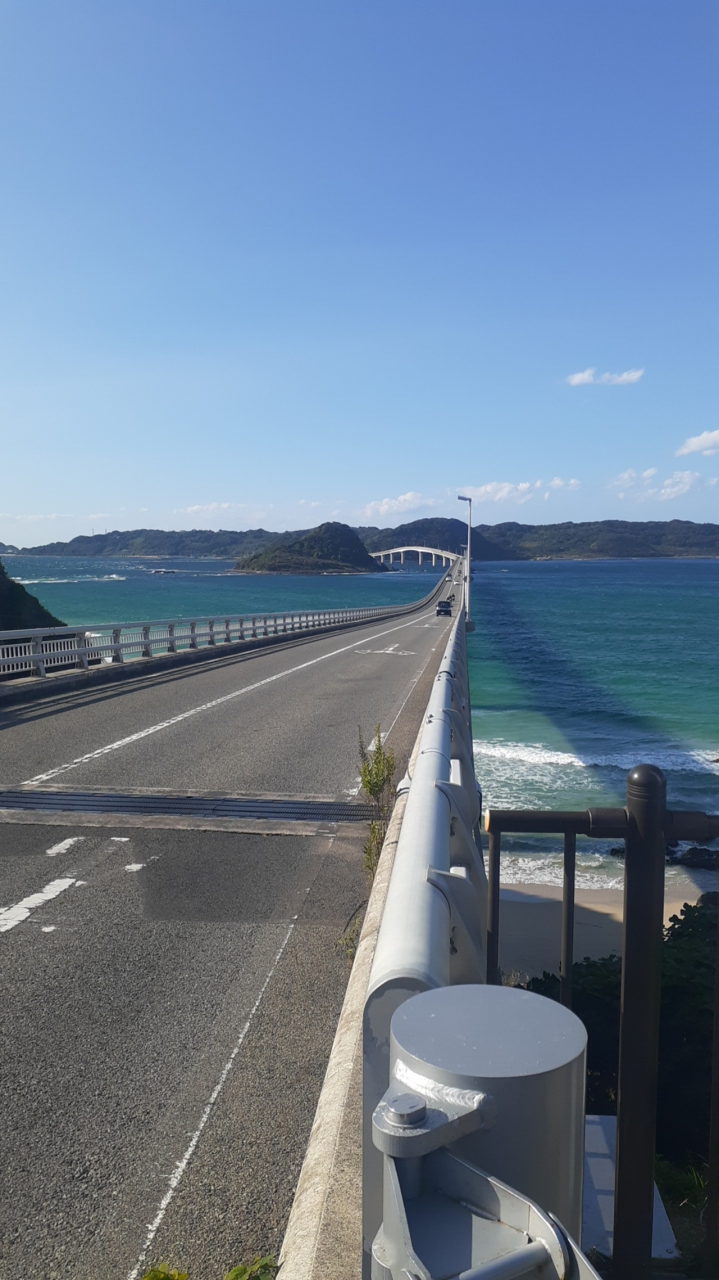 下関市内から北に約50km、下関市豊北町というところに位置する角島と本州を結ぶ橋です。