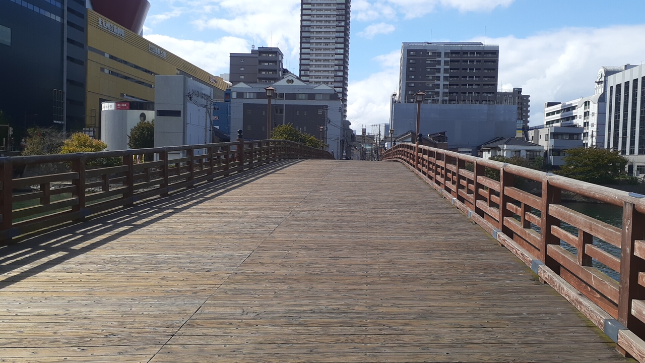 北九州市小倉地区中心部に位置する紫川という川に架かる橋の1つで、2021年10月17日の日曜日に訪れました。