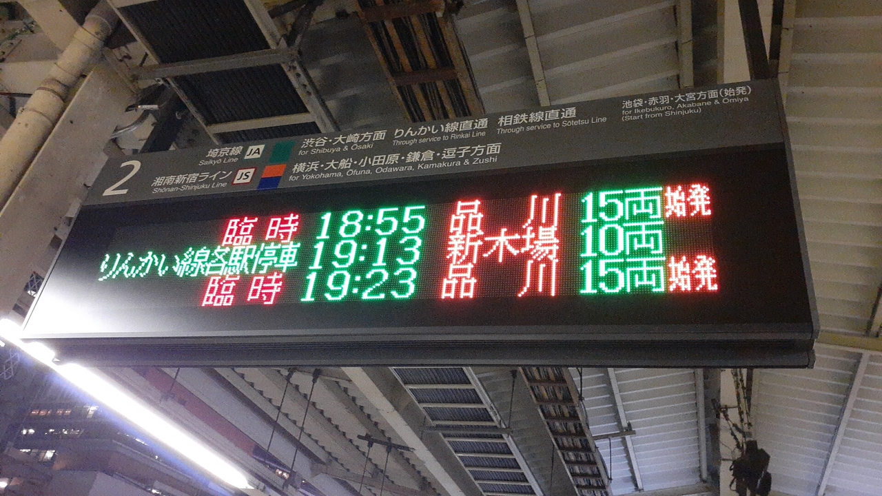 当日は新宿18時55分発臨時列車品川行きを利用しましたが、E233系という車両が15両で運転していました。