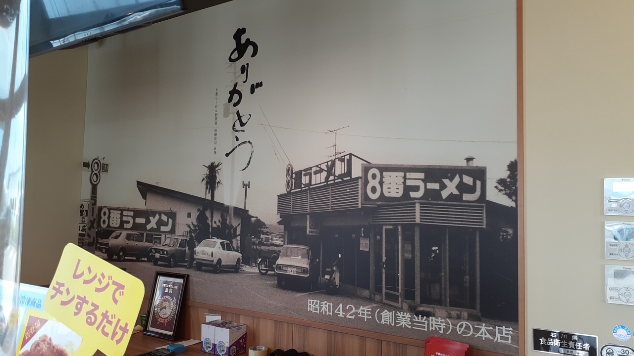 石川県金沢市に本拠地を持つ株式会社ハチバンが運営するチェーンタイプのラーメン店で、本店は石川県加賀市のうちJR加賀温泉駅から車で10分弱のところの国道8号沿いにあります。