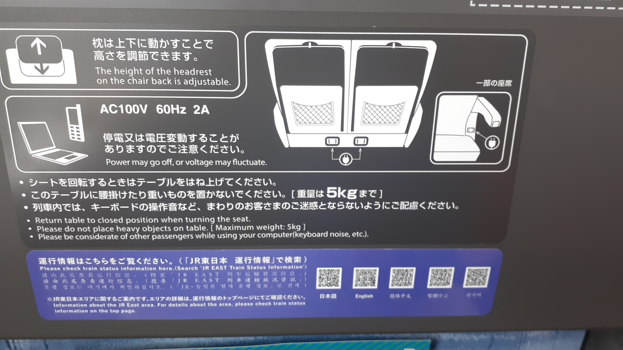 当日は最後尾の座席を利用しましたが、最後尾の座席の為かはわかりませんが、コンセントが前方座席の足元とひじ掛けの下辺りと2ヶ所あった為、便利に感じました。- 旅行時期