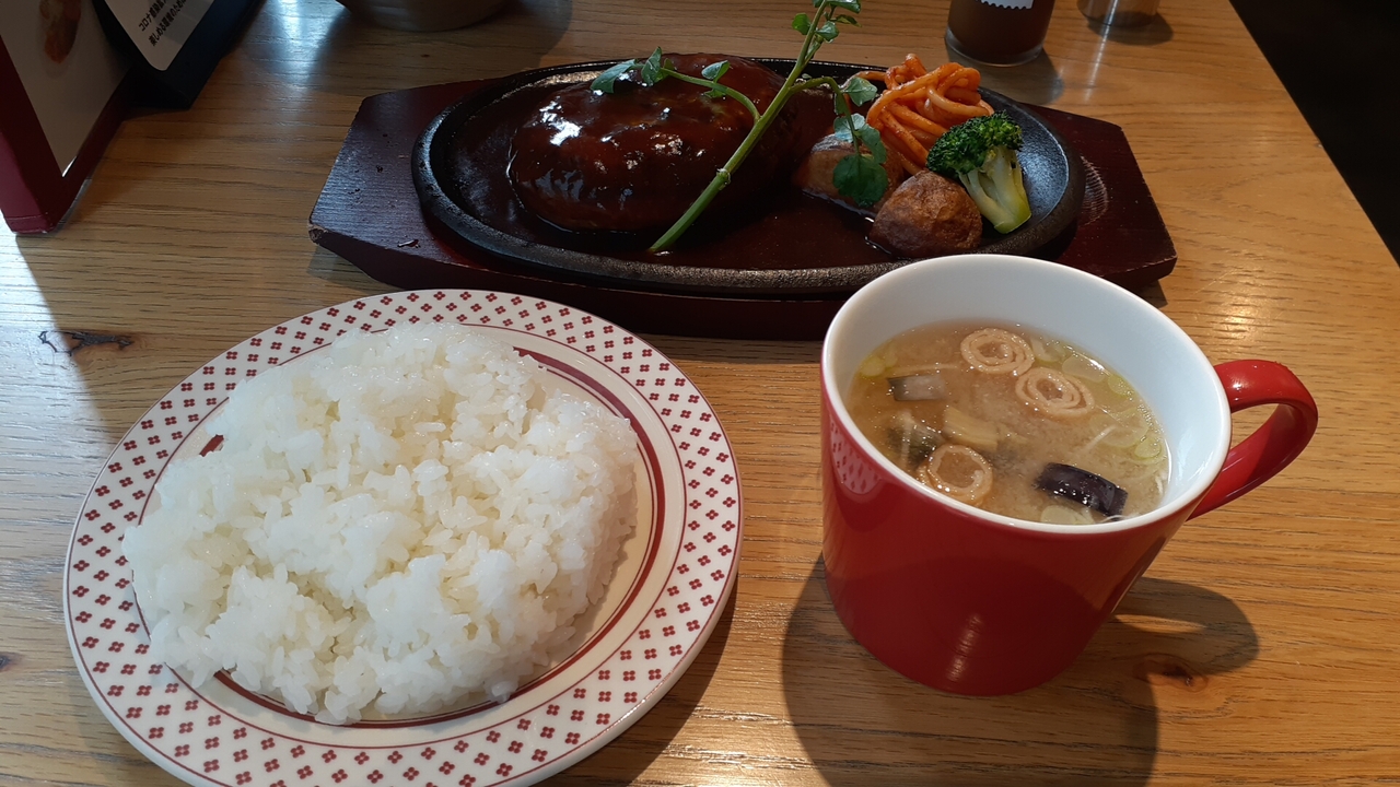見た感じ柔らかそうなハンバーグで、中はジューシーでしたが、外はしっかり焼いた食感を楽しむことができ、美味しかったです。