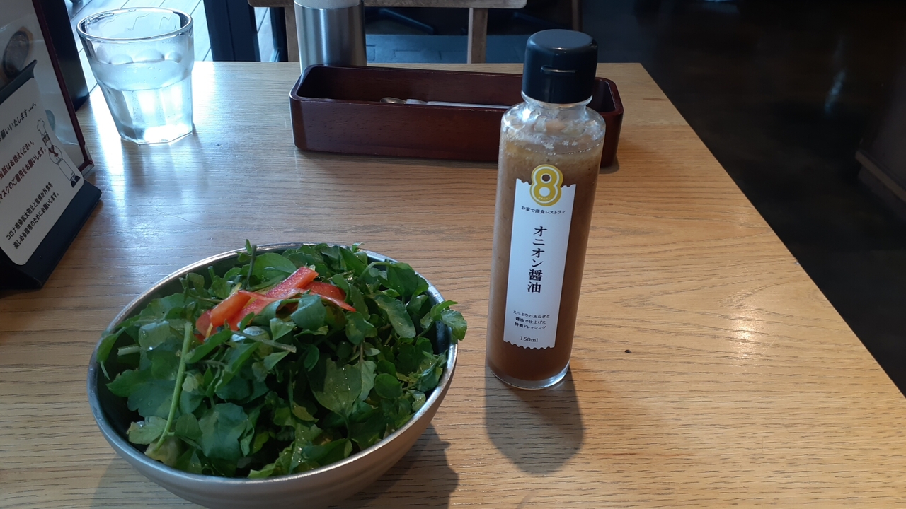 まずクレソンサラダですが、クレソンの苦味が口の中に広がり、好みが分かれる味でした。ただドレッシングをかけたところ、苦味は和らぎました。