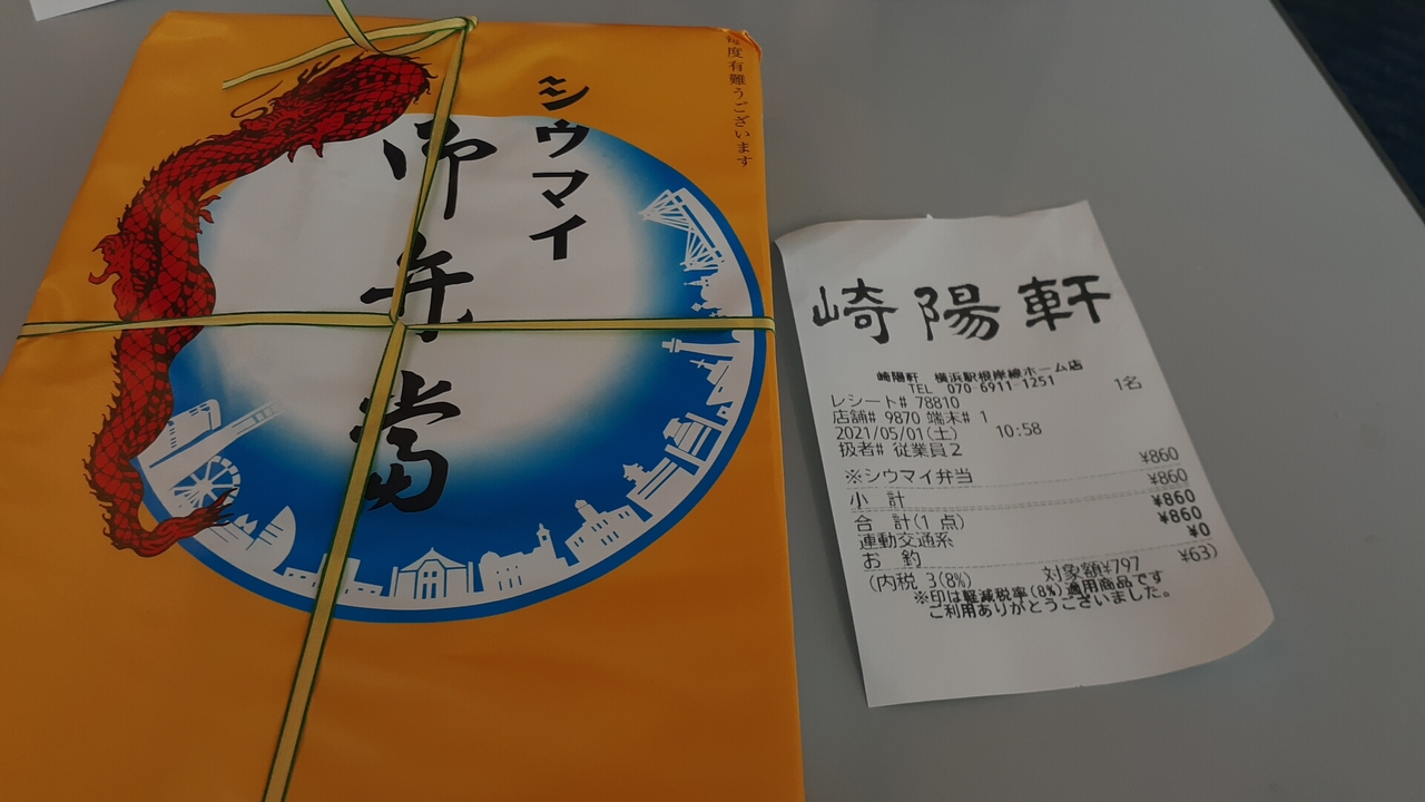 崎陽軒が運営する駅弁等の販売店の1つで、2021年5月1日に利用しました。