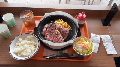 ランチですが、フードコートの中にある「ペッパーランチ」というお店でアンガスビーフワイルドジューシーカットステーキを頂きました。