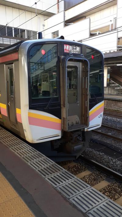 この列車、長岡~直江津間で、途中、宮内・来迎寺・柏崎・柿崎・犀潟のみ停車する為、比較的落ち着いて乗車することができるかと思います。