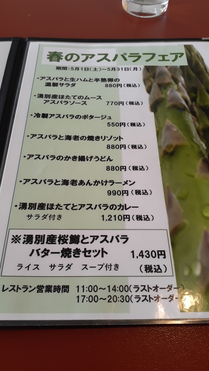ただ2021年5月5日現在、「春のアスパラフェア」と称し、2021年5月末までの期間限定ですが、アスパラを使用したメニューが複数あり、その点は面白いと思いました。