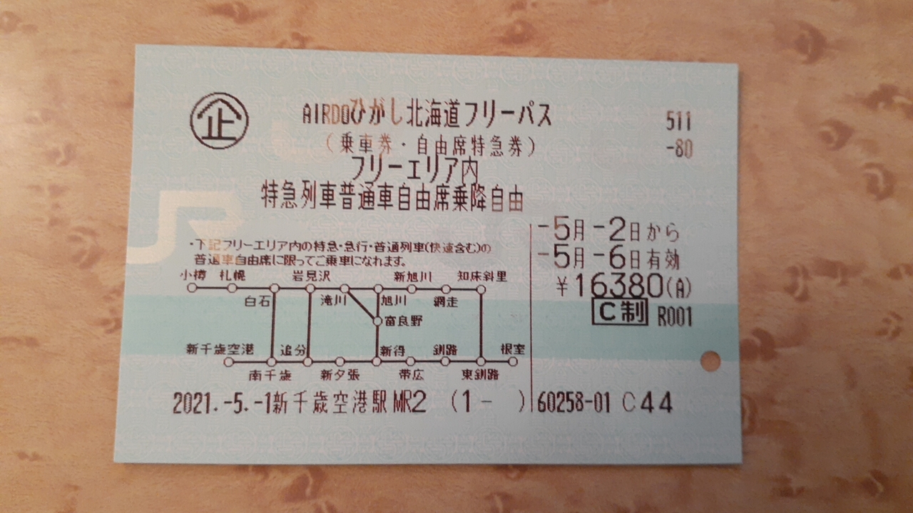 この切符、北海道までAIR DOの飛行機を利用して来道された方のみ購入可能な割引切符で、飛行機に搭乗したその日又はその翌日いずれかから起算して連続する5日間、16,380円で一定のエリアの特急・快速・普通列車が利用し放題(乗り放題)となります。