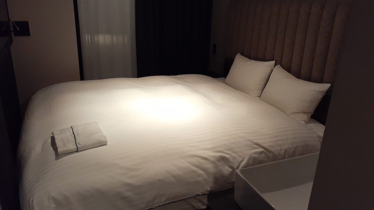 部屋自体、ブラウンを基調とした内装となっていて、広さはやや狭めに感じました。ただベッドはダブルサイズのベッドでした。