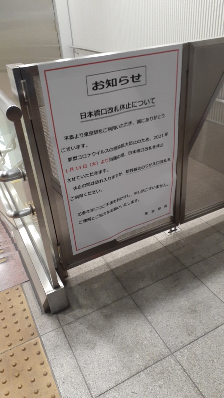 2021年1月14日より当面の間、日本橋口の営業を休止する旨の掲示がありました