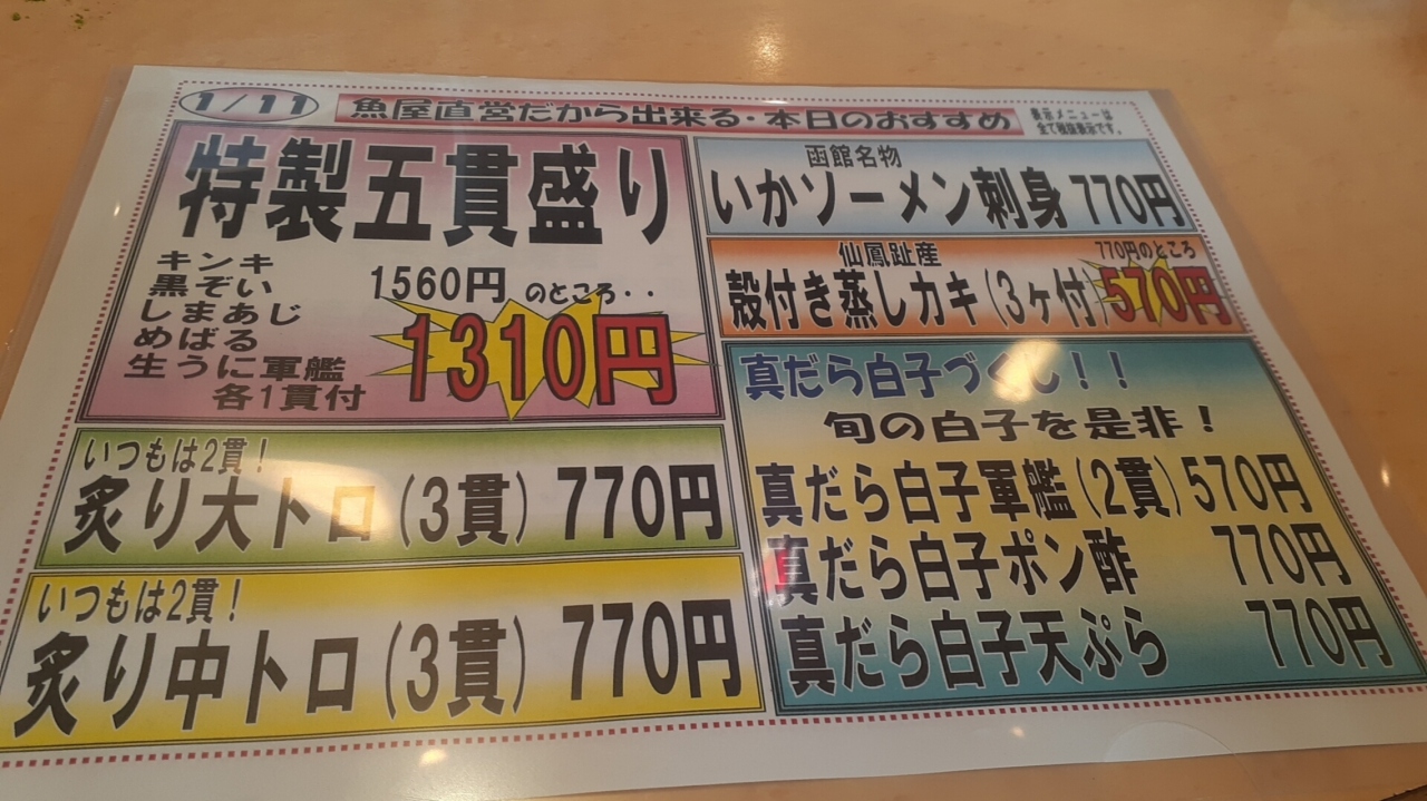 函館市内の魚屋であるまるかつ水産直営の回転寿司店で、本店は金森赤レンガ倉庫の近くにあります。