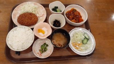 参考までにこの日の夕食はメンチカツと酢豚の定食でした。