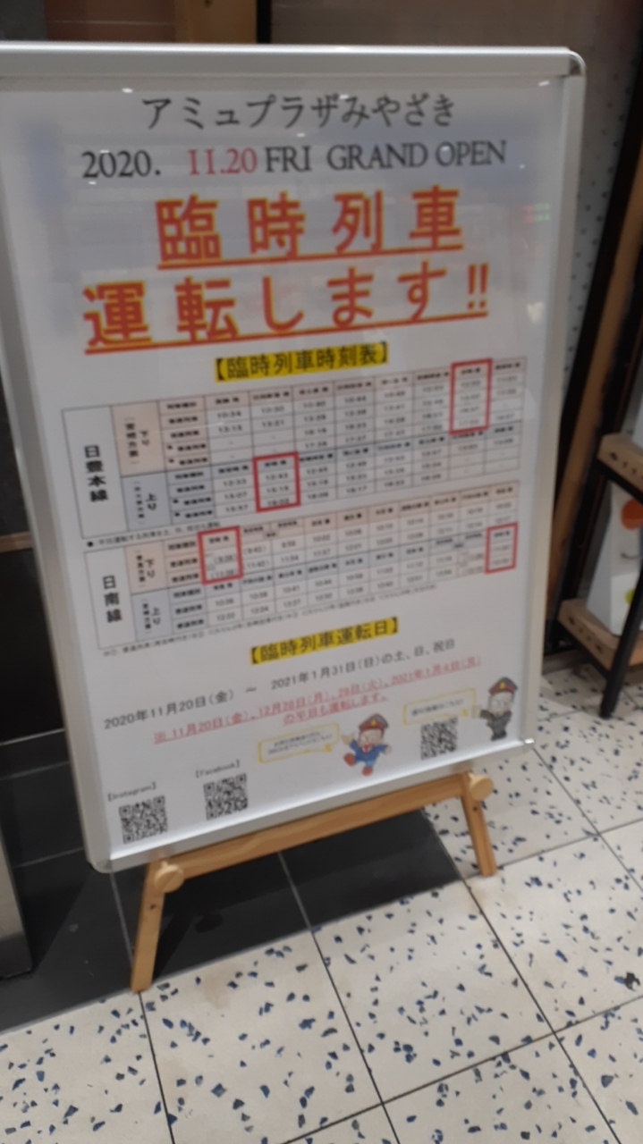 2020年12月27日現在、アミュプラザみやざきのオープンに伴う臨時列車の運行があるそうですが・・・