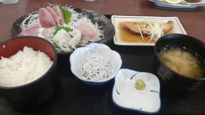 みなと定食ですが、ご飯・味噌汁の他、地魚の煮付・刺身4点(この日はまぐろ・いか・かんぱち等)盛り・小鉢(この日はしらす)が付いていました。
