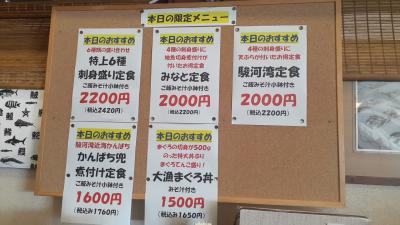 またメニューはいつでも食べられる通常メニューの他、その日限りの本日限定メニューの2つがあり、この日は通常メニューから450円する「桜えびコロッケ」を、本日限定メニューから2,000円する「みなと定食」を頂きました。