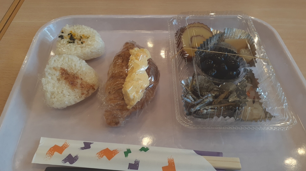 朝食はコロナ対策の為、パック包装されたおかずの他、個別包装のおにぎり・パンの提供でした。なお、味噌汁の提供はなく、ほうじ茶の提供になる点は不便さを感じました。