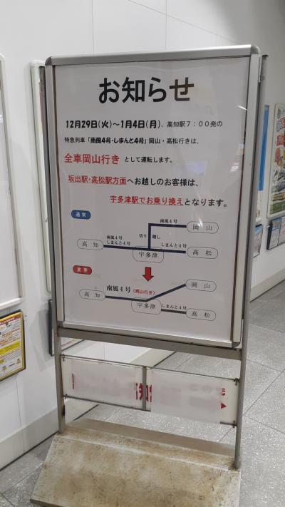 そのうち今回は2020年12月29日から2021年1月4日に高知7時00分発特急しまんと4号高松行きを利用予定のか方への注意事項です。