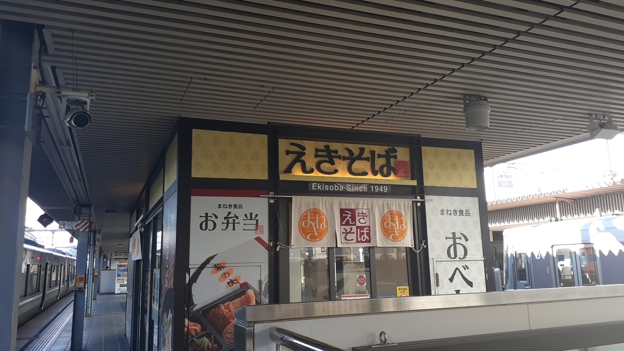 姫路駅の駅弁の販売を担当しているまねき食品という会社がJR姫路駅の在来線ホームの上にて立ち食い形式で麺類を提供するお店で、姫路駅に立ち寄る機会がある際は大抵利用します。