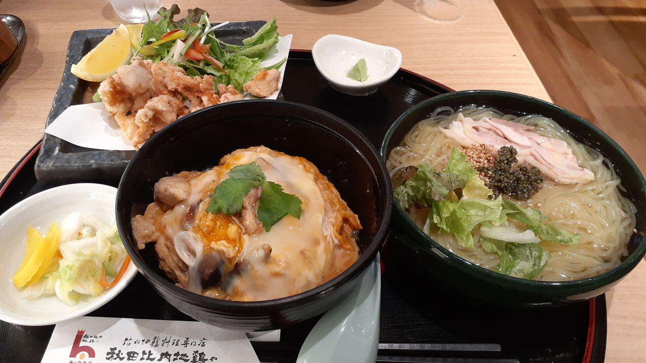 当日は1,250円する「比内地鶏の親子丼と田沢湖冷麺のセット」と850円する「比内地鶏の唐揚げ」を頂きました。