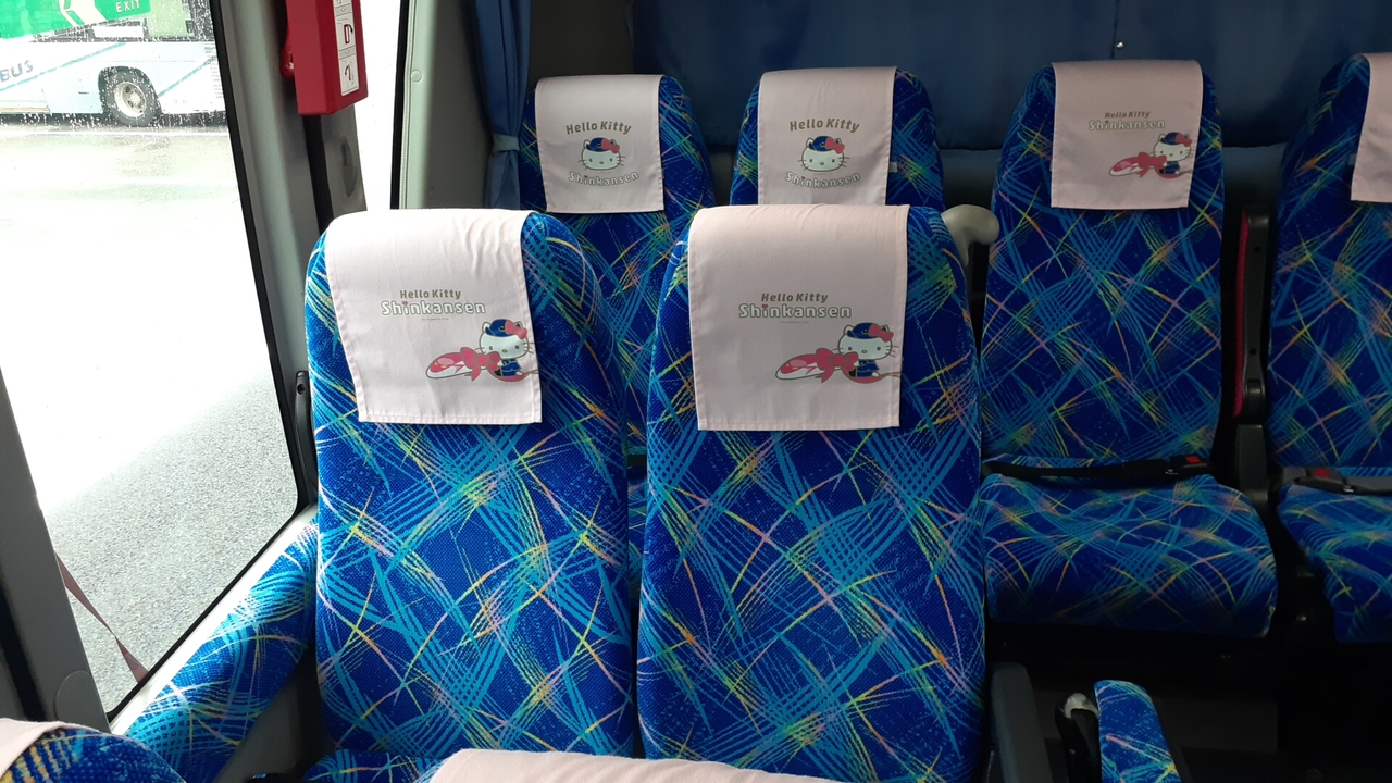 またこの日は「ハローキティ」のラッピング車両が使用されていて、車体の他、シートカバーにもキディちゃんのイラストが描かれていましたので、親子連れの方やハローキティ好きの方にもオススメです。- 旅行時期