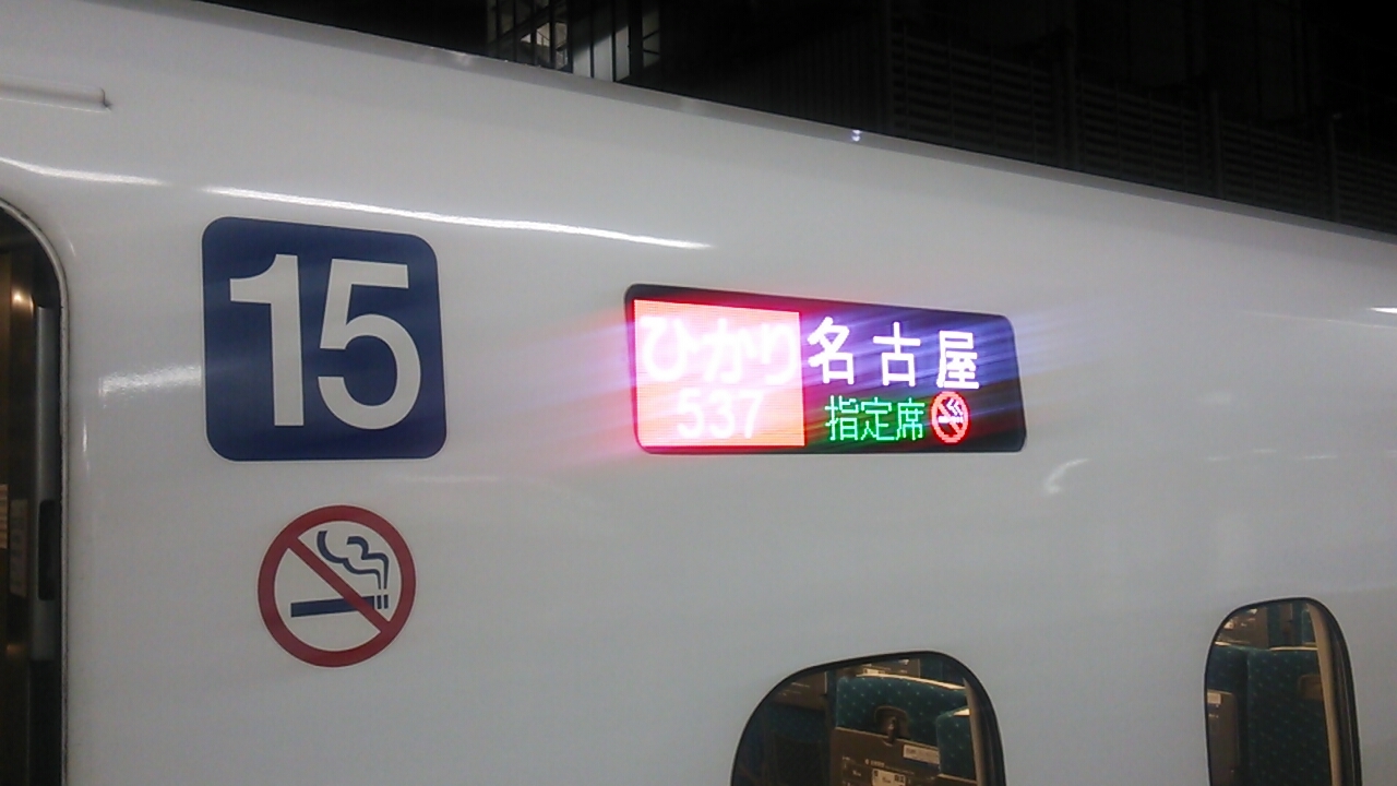 JR東海のN700系が使用され、16両編成中自由席は1~5号車、グリーン車は8~10号車、以外は普通車指定席でした。