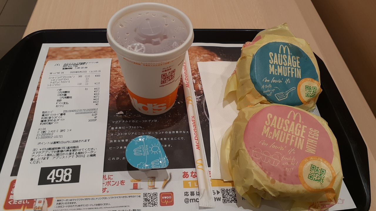 その為、ソーセージマフィン・ソーセージエッグマフィンとドリンクを頼む場合、ソーセージマフィンとドリンクのコンボで注文するよりソーセージエッグマフィンとドリンクのコンボで注文したほうがお得ですので参考にしていただければ幸いです。