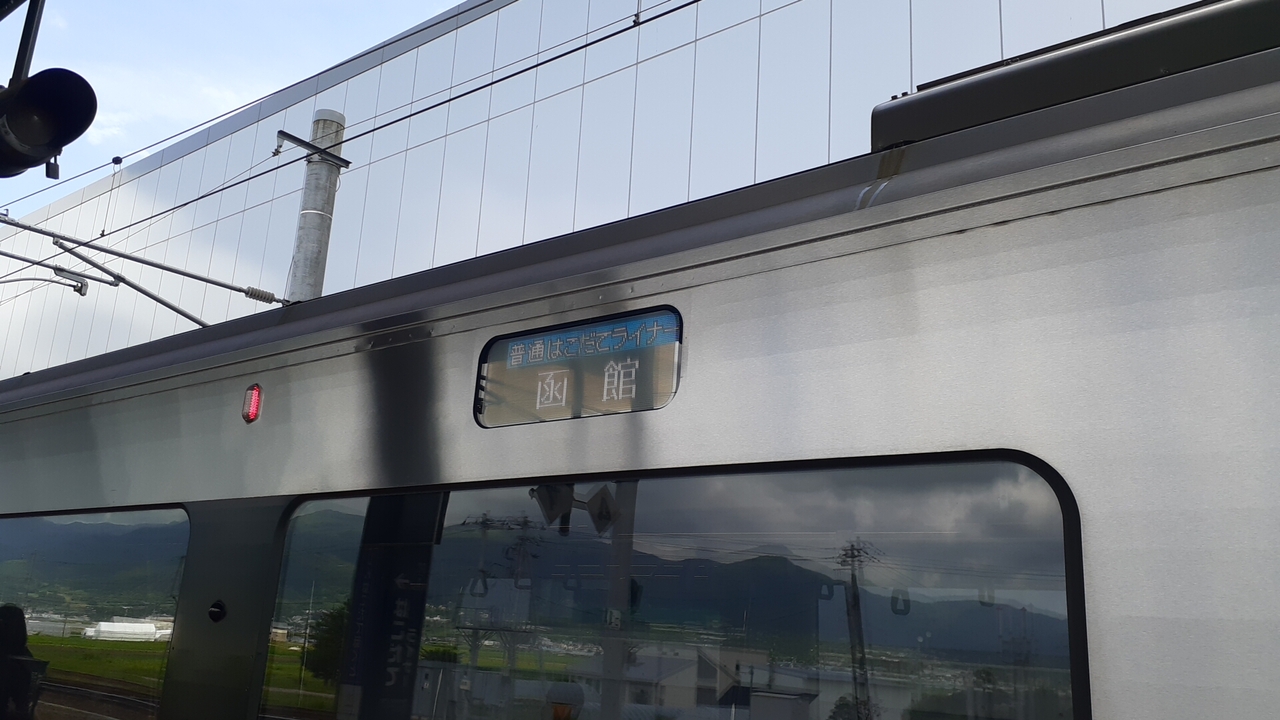 実はこの列車、本来ならば快速はこだてライナーとして新函館北斗~函館間は途中、五稜郭のみに停車するのですが、この日は函館本線のダイヤの乱れにより普通列車はこだてライナーとして各駅に停車するかたちになりました。