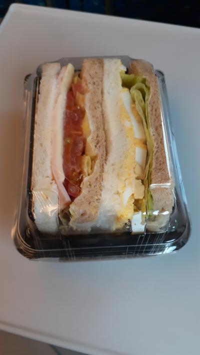 2020年7月18日に山陽新幹線の車内販売で同社が製造している「ハムチーズ&たまご野菜サンド」というサンドイッチが販売されていたので購入しました。