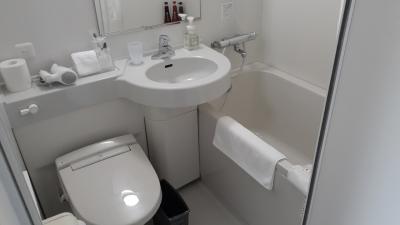 白を基調とした室内で、ベッドはダブルサイズのものが使用されていました。バス・トイレ付であるのは勿論、水道は温度調整が自在のもので便利でした。