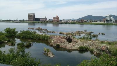 ツインブリッジ~犬山城間の川沿いでは荒々しい岩の景色を楽しむことが出来ます