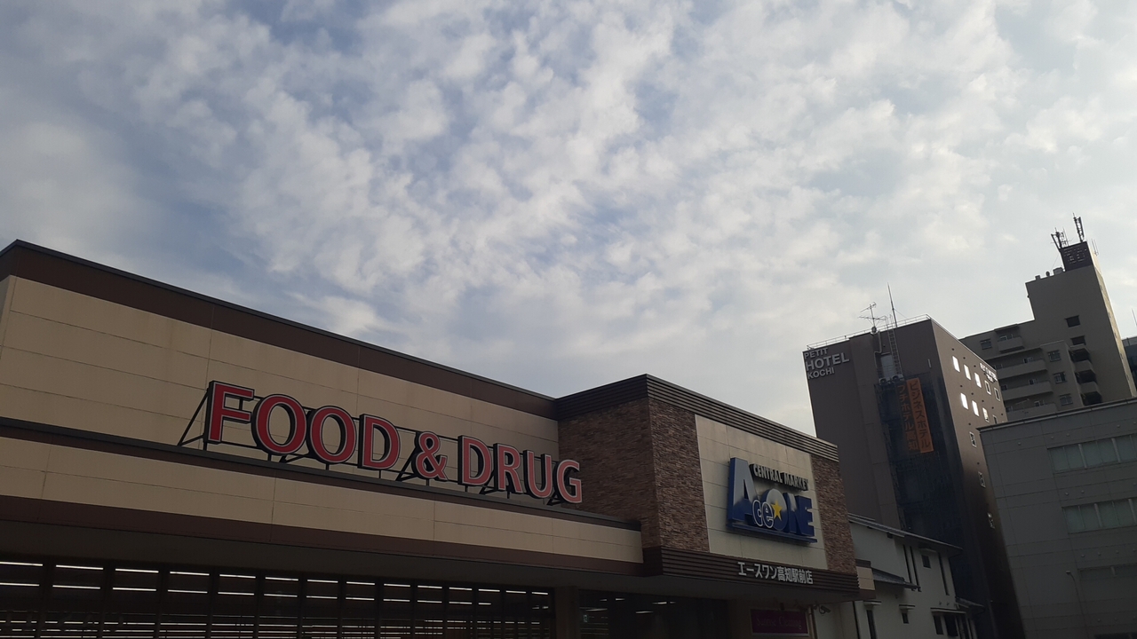 高知市に本拠地を持つエースワンという会社が高知県内を中心に香川県・愛媛県等でも店舗を展開している食品を中心としたスーパーマーケットの1つで、高知駅前店はJR高知駅の南西寄り徒歩5分程度、警察署の西隣にあります。
