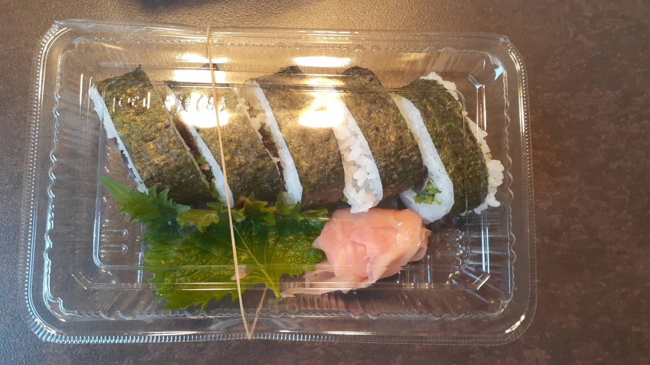 太巻きの中の具が鰹となっていて、高知ではお馴染みの食べ物らしいです。しそも一緒に添えられているので、後味はさっぱりしていました。