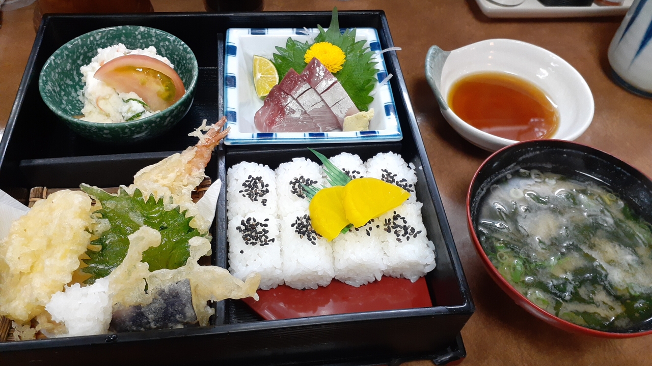 一方、幕の内定食はご飯・味噌汁の他、天ぷら(5品程度)・刺身(この日はぶり)・焼き鳥・ポテトサラダと様々な料理を楽しむことができ、値段以上の内容かと思います。