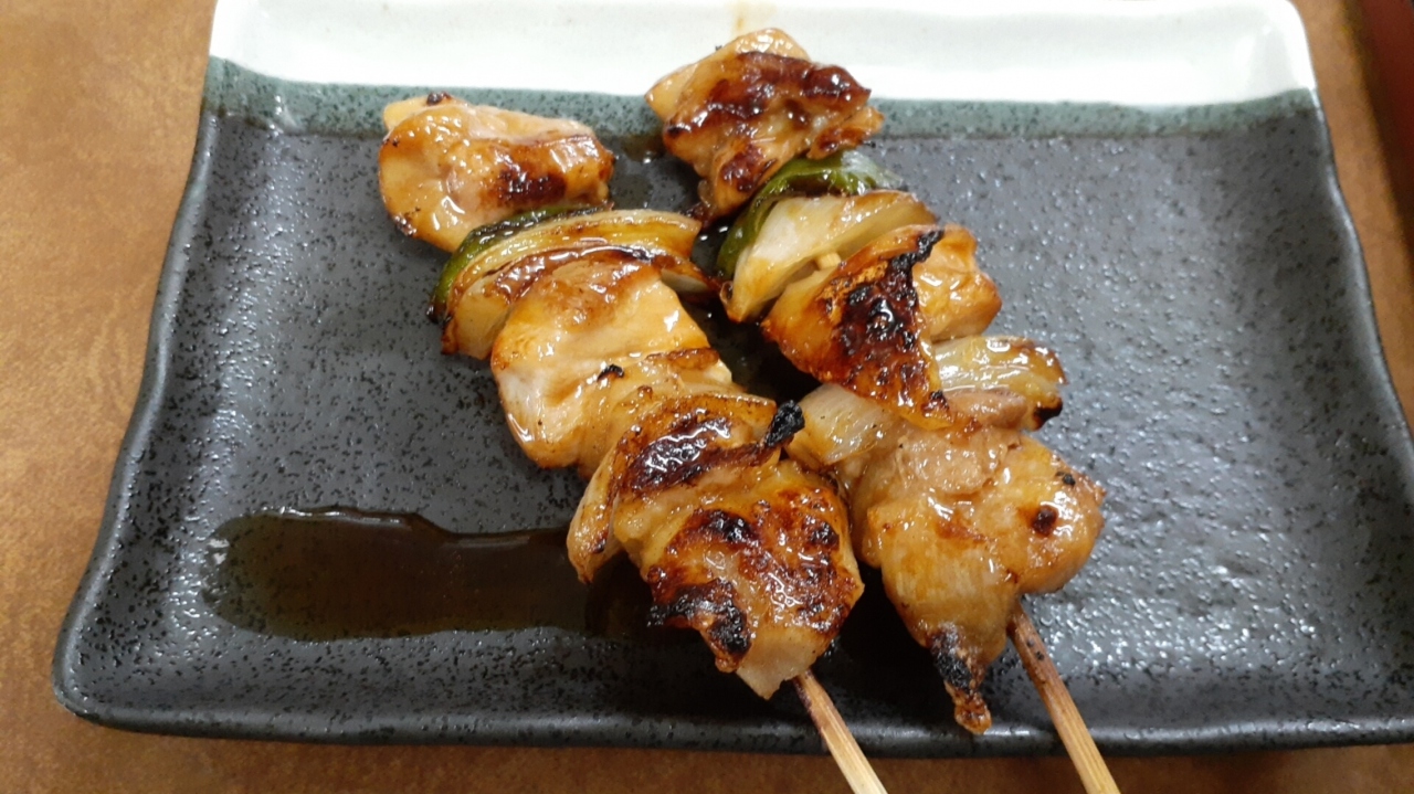 まずは地鶏の焼き鳥ですが、地鶏(多分、阿波尾鶏と思いますが・・・)と葱が刺さっていて、一瞬ねぎまと間違えそうになる感じでした。