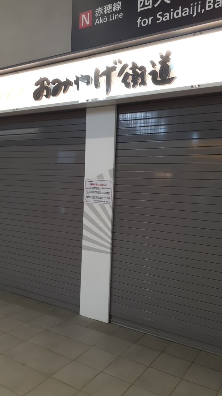 お土産品の他、駅弁の取扱いもあり、通常であれば品数は充実しているのですが、2020年6月13日現在、コロナの影響の為か営業を休止していました。
