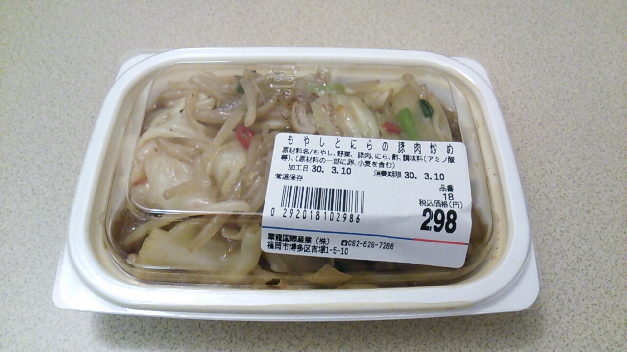 当日は「いわしの蒲焼き」と「もやしとにらの豚肉炒め」の2品を購入し、頂きました。