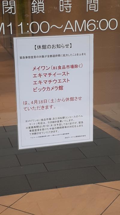 2020年4月18日以降も営業を行うのは食品スーパーのしずてつストア、ドラッグストアのウェルシアの他、新静岡セノバ内にある医院等で、飲食店は勿論、はなまるダイニング・花城等食品を取り扱う専門店も営業を休止するそうで、静岡市内に所用で訪れた際、飲食利用で訪れる際は注意が必要です。- 旅行時期
