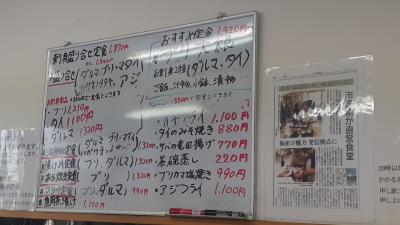 海鮮丼・天丼・刺身定食の他、丼と蕎麦のセットメニュー、さらに当日限定メニューなのか、この日の場合、鰈の煮付と刺身の定食、焼鯖と刺身の定食、めじ鮪の漬け鉄火丼等の取扱いがありました。
