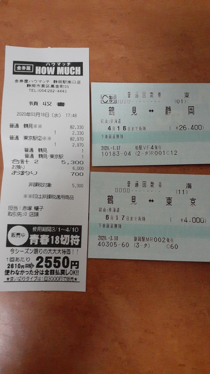 そのうち今回は2020年3月18日に静岡~東京の在来線のチケットを購入した時の話です。