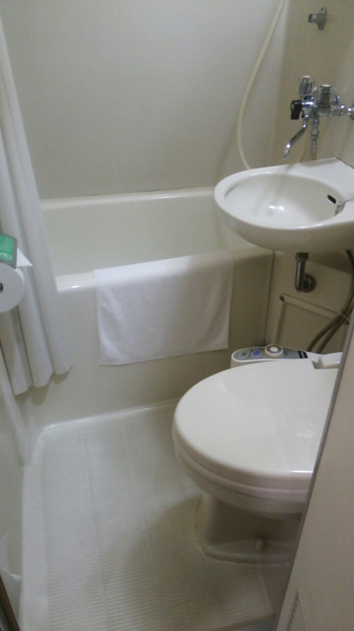 この日は幸いバス・トイレ付きの部屋でしたが、広さは狭めで、木目調の造りですが古さを感じさせる部屋でした。