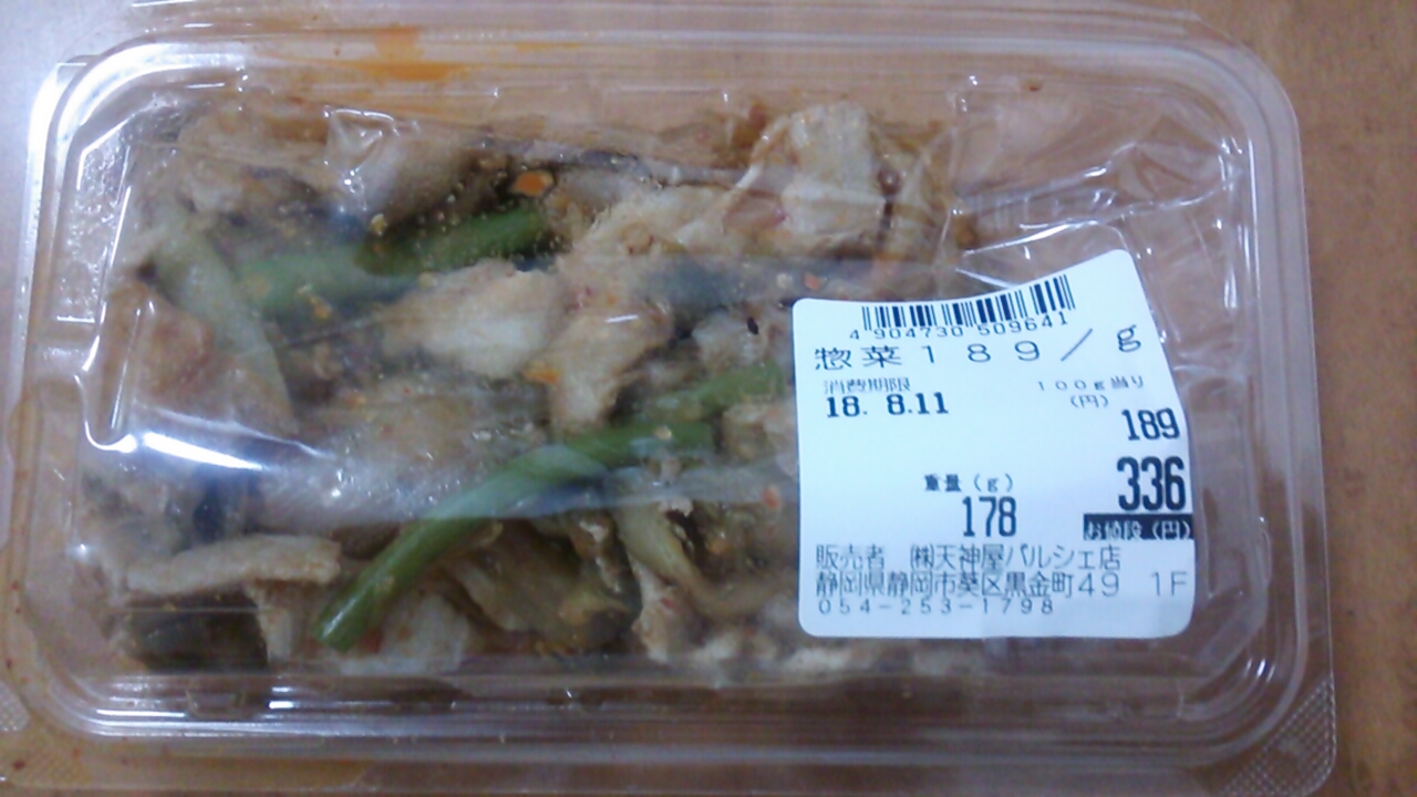 豚肉・キャベツ・ねぎ等が使用されていて、値段は100gあたり189円とまずまずでした。