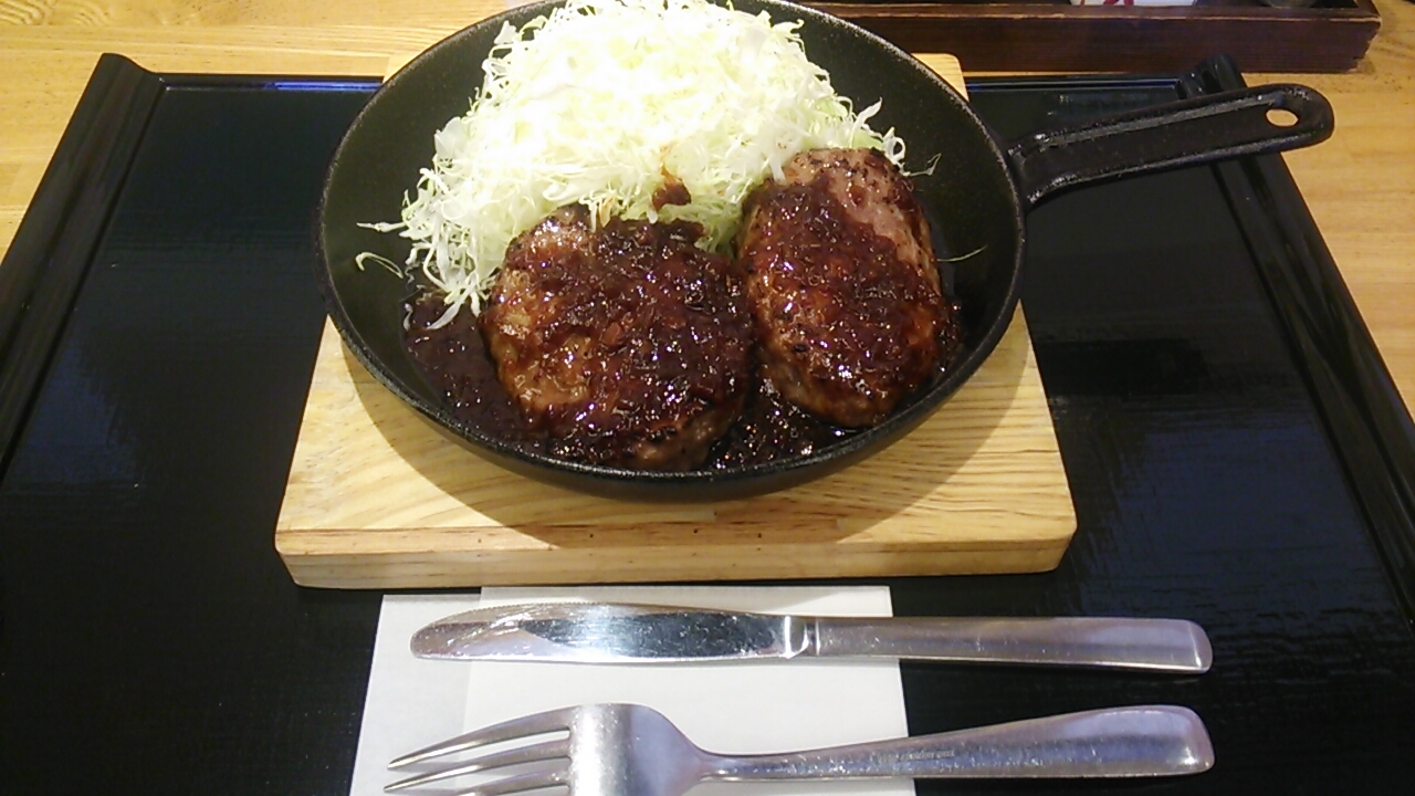 本来は「Wハンバーグ定食」というメニューで提供されており、その場合は950円します。ただ店員の方に相談したところ、ご飯・味噌汁なしの単品メニューとした上で200円引きで提供する旨の対応をして戴き助かりました。