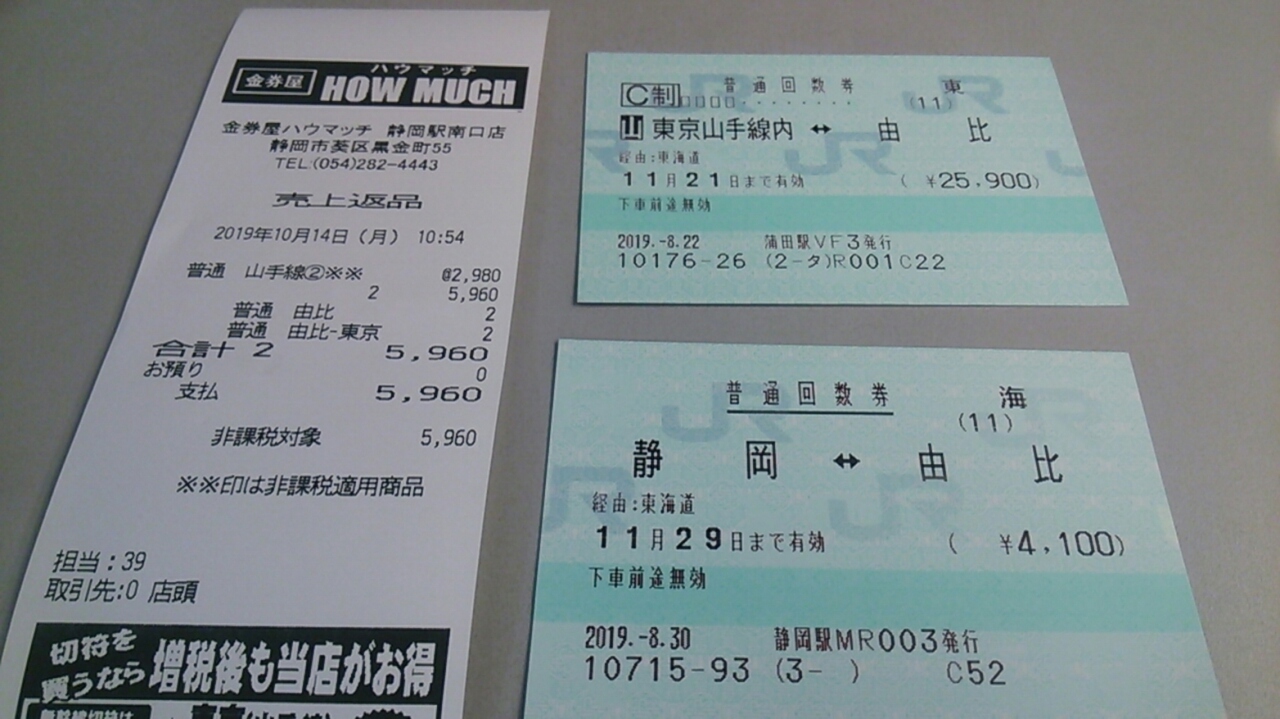 この切符は2019年10月の体育の日の3連休に使用する予定でしたが、台風19号の為、使用を断念し、2019年10月14日にこちらのお店で買い取りの相談をしました。