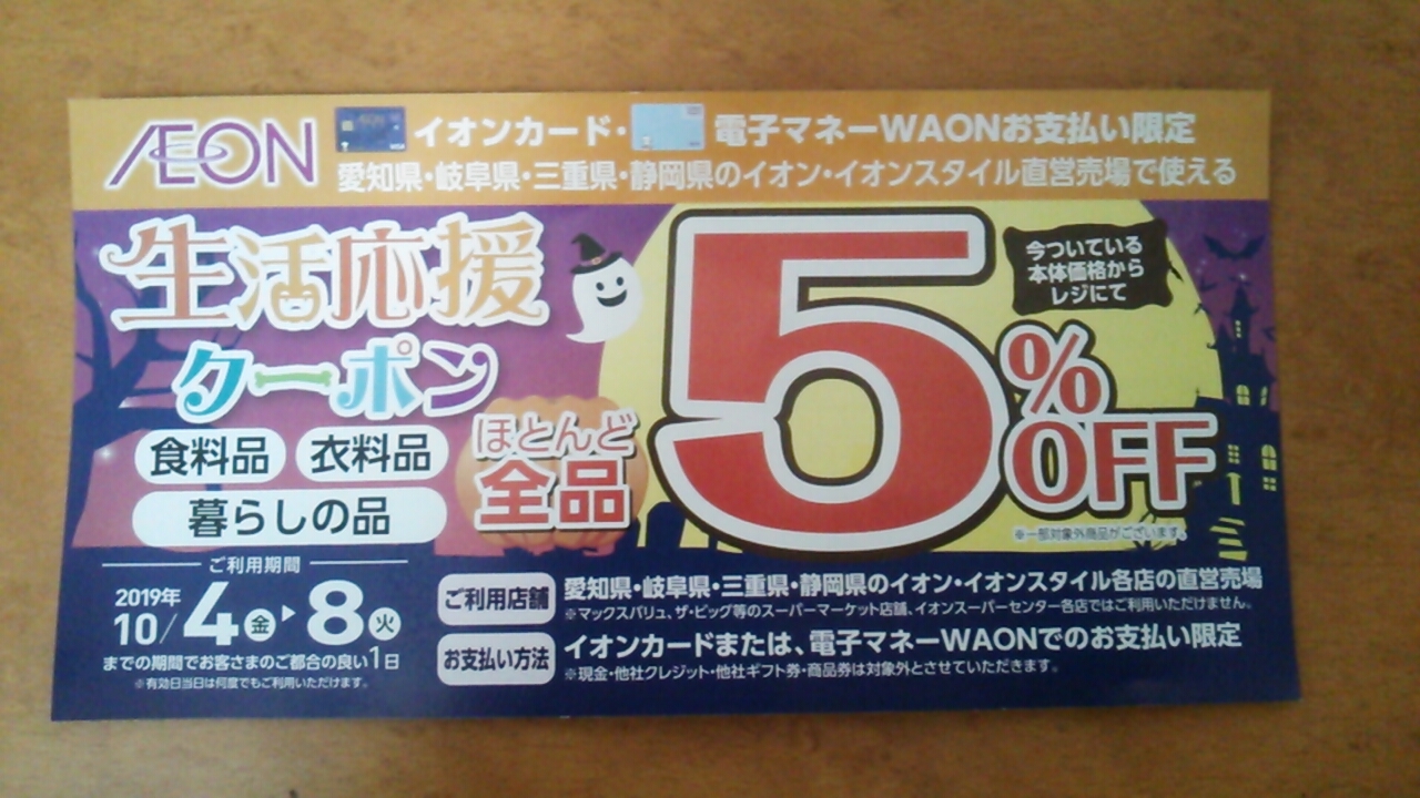 但し靴下を係員がいるレジで購入手続きをしたところ、2019年10月4日~2019年10月8日の間のいずれかの1日に限り食料品・衣料品等が5%引きとなる「生活応援クーポン」を貰うことができ、その点はラッキーに感じました。