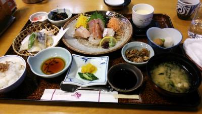 ご飯・味噌汁の他、刺身・天ぷら・小鉢・デザートが付いてきました。参考までに当日の場合、刺身は海老・鯛・かんぱち等が、天ぷらの場合、海老・ししとう・なすなどが付いてきて、量的には満足できるかと思います。