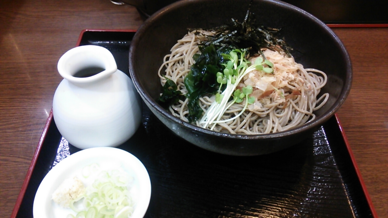 水で締めた蕎麦に冷たいぶっかけだしをかけるという内容ですが、そばは食感が良いもののあまり太さはなく細目だったのが気になります。