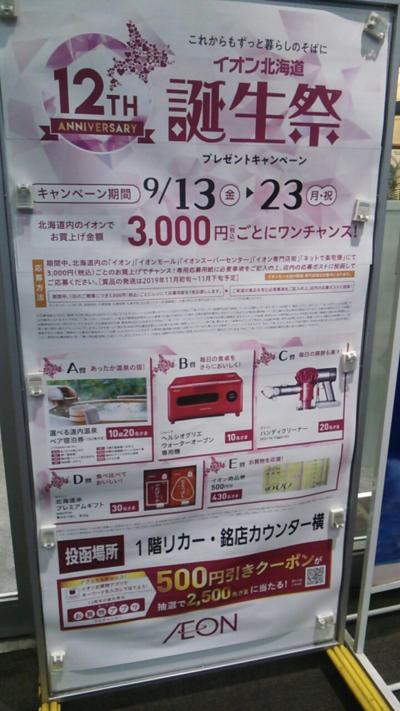 2019年9月16日現在、「イオン北海道誕生祭」が開催中でした