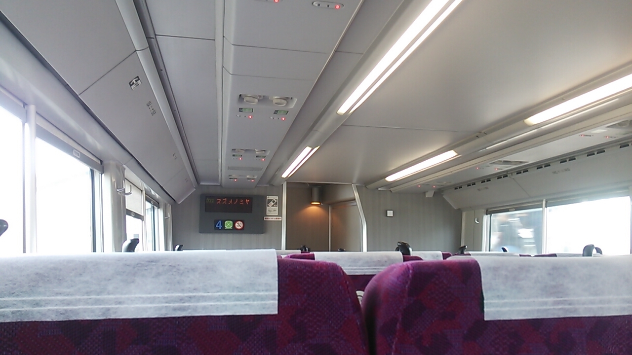 当日はグリーン車を利用したのですが、2階でも誰も座らない2人掛けリクライニングシートが所々ある等比較的空いていて、相席になることなくゆったり快適に移動することが出来ました。